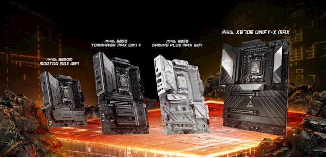 微星全新AMD X870(E)和B850 MAX系列主板也在CES亮相,内置OC引擎,扩容至64MB的BIOS ROM以及更智能的EZ DIY升级功能。可提供最高达15%的超频性能提升,并能完全释放AMD最新处理器的全部性能。
