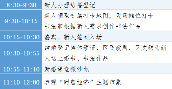 (四)“甜蜜经济”主题市集:本次集体婚礼将打造“甜蜜经济”主题市集。诚邀婚庆、旅游等行业协会及知名企业入驻设摊,为新人们提供一站式产品服务与优惠,实现资源精准对接。携手合作伙伴,共筑甜蜜经济生态,见证幸福,共享发展。